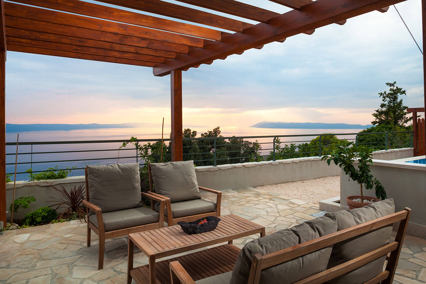 Villa Kate is surrounded by a beautifully designed garden where the Mediterranean scents: lavender, sage and rosemary complement the shades of olive and tangerine trees.