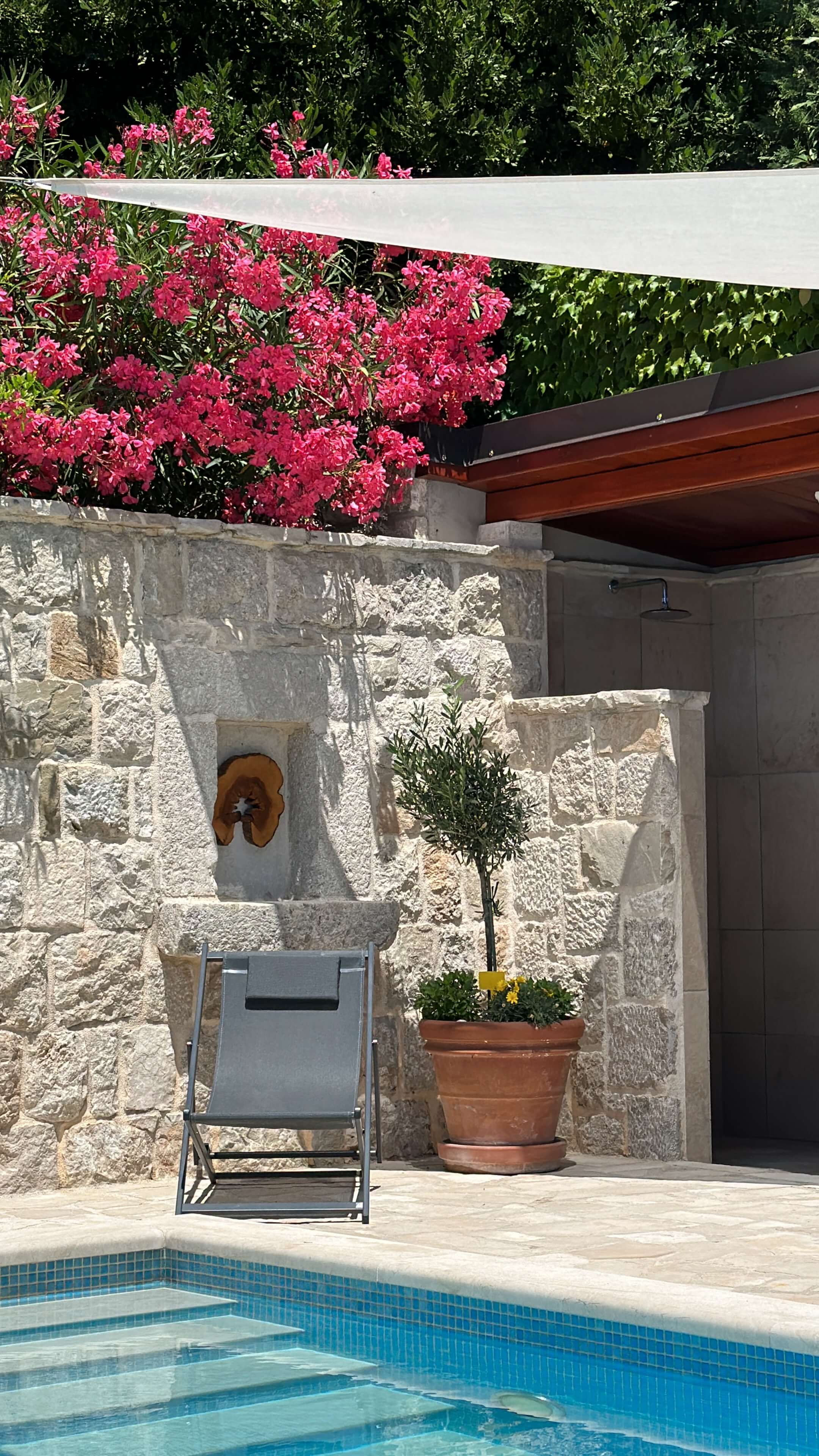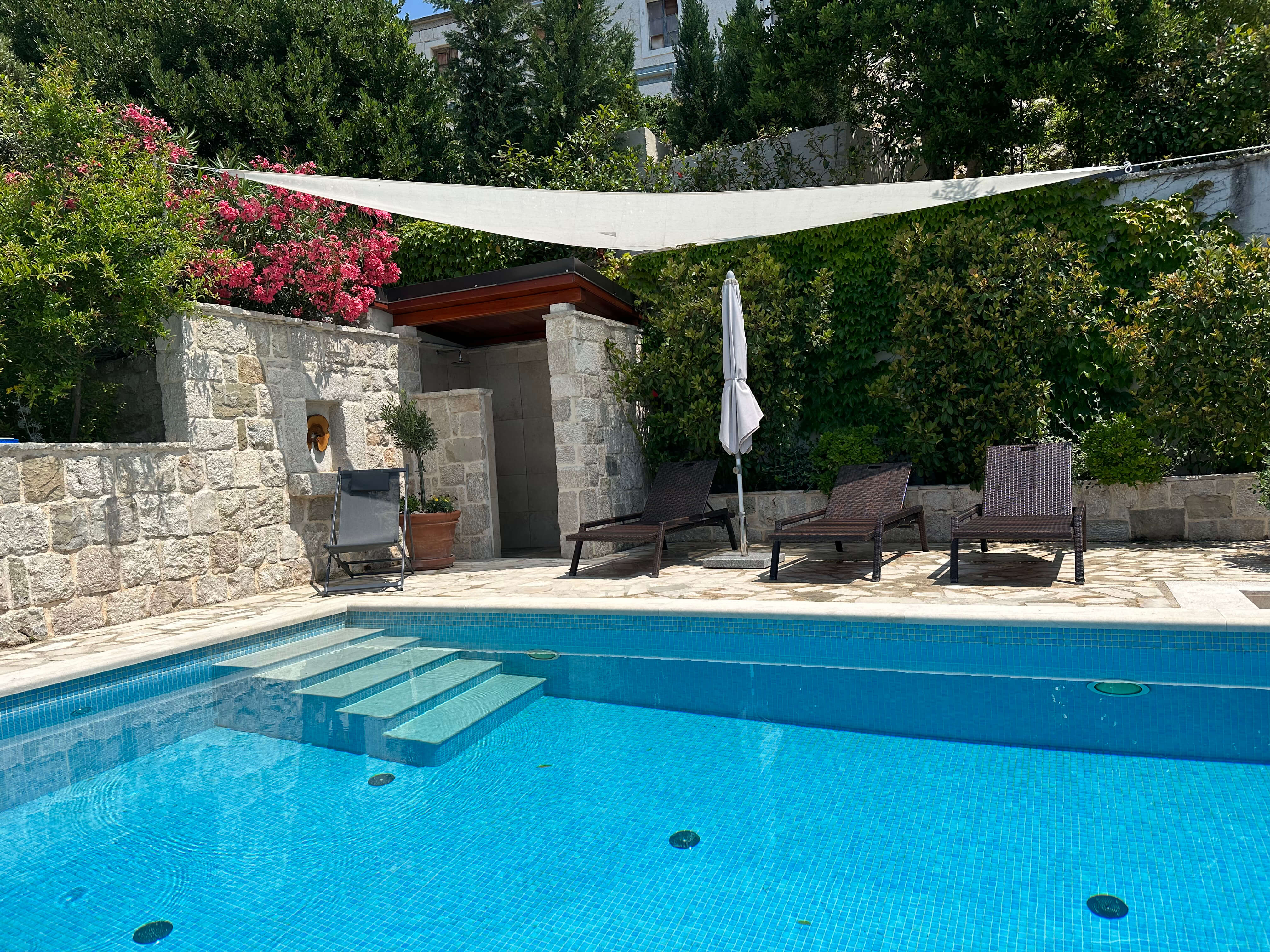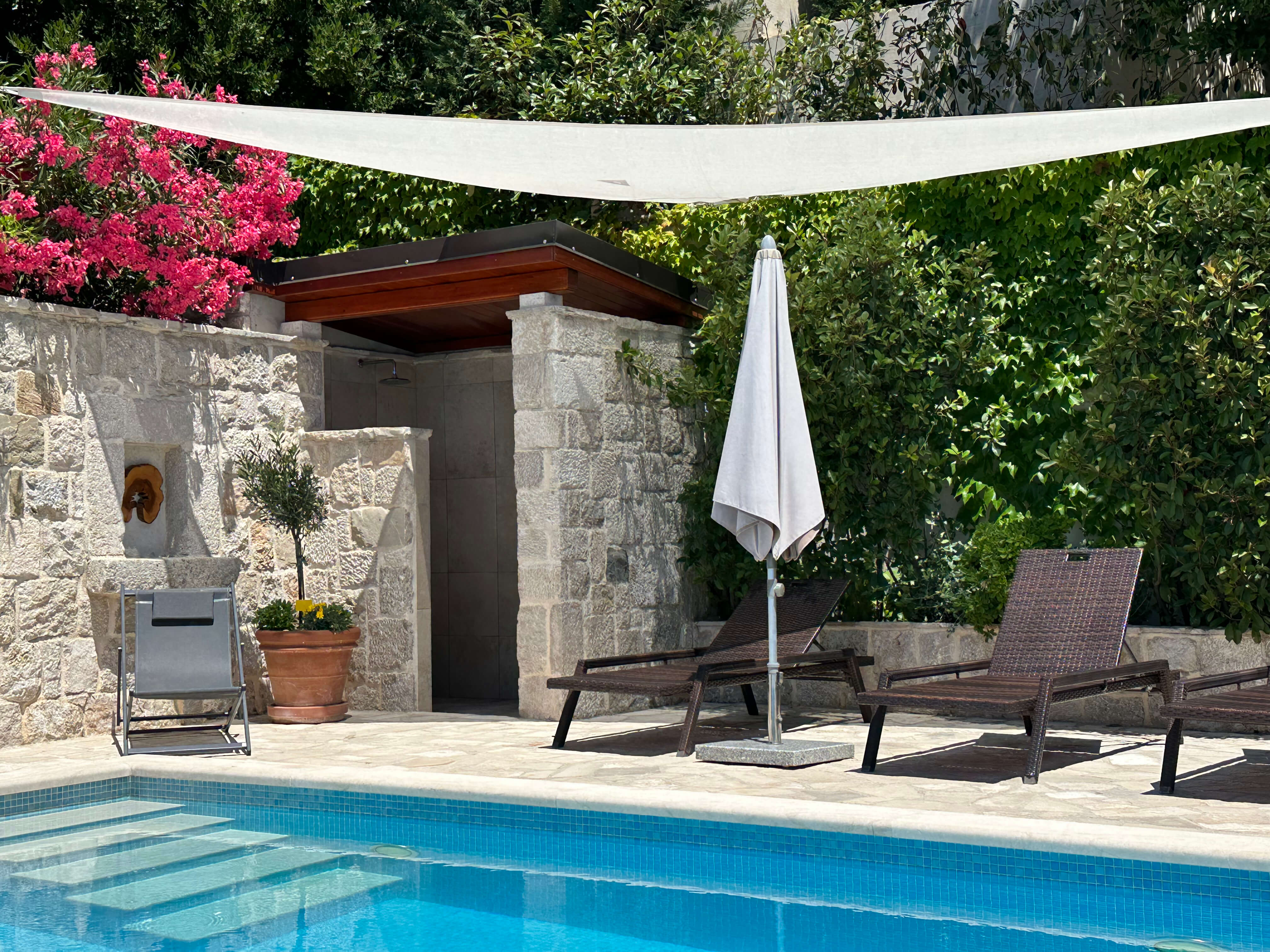 | Outdoors | pool, towels, shower, sun beds, seating area, barbecue, parking |